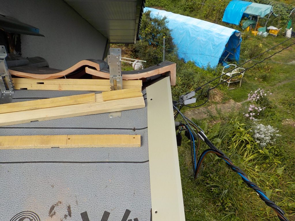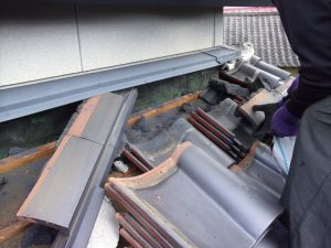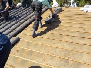 既存のS型瓦を撤去します。古い瓦桟木も撤去します。