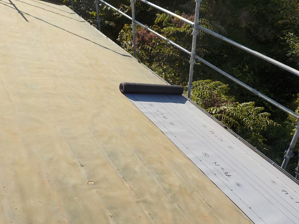下地に異常がなかったので、新たにゴムアスルーフィングを重ね張りします。