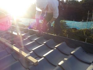 壁際の瓦(雨転部)を、和型にて納め終えました。