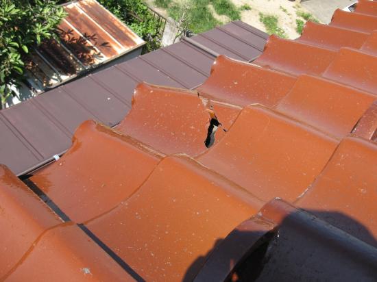 点検したところ、このように軒先瓦数枚が割れていたので交換しました。