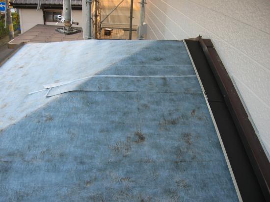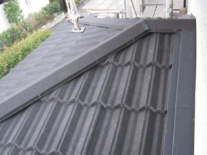 既存は化粧スレートです。カバー工法にてT・ルーフを施工します。今回写真では玄関屋根のみピックアップしてみました。